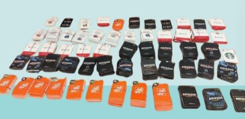 Police say about 1,500 stolen gift cards and Canadian cash were found inside the vehicle.